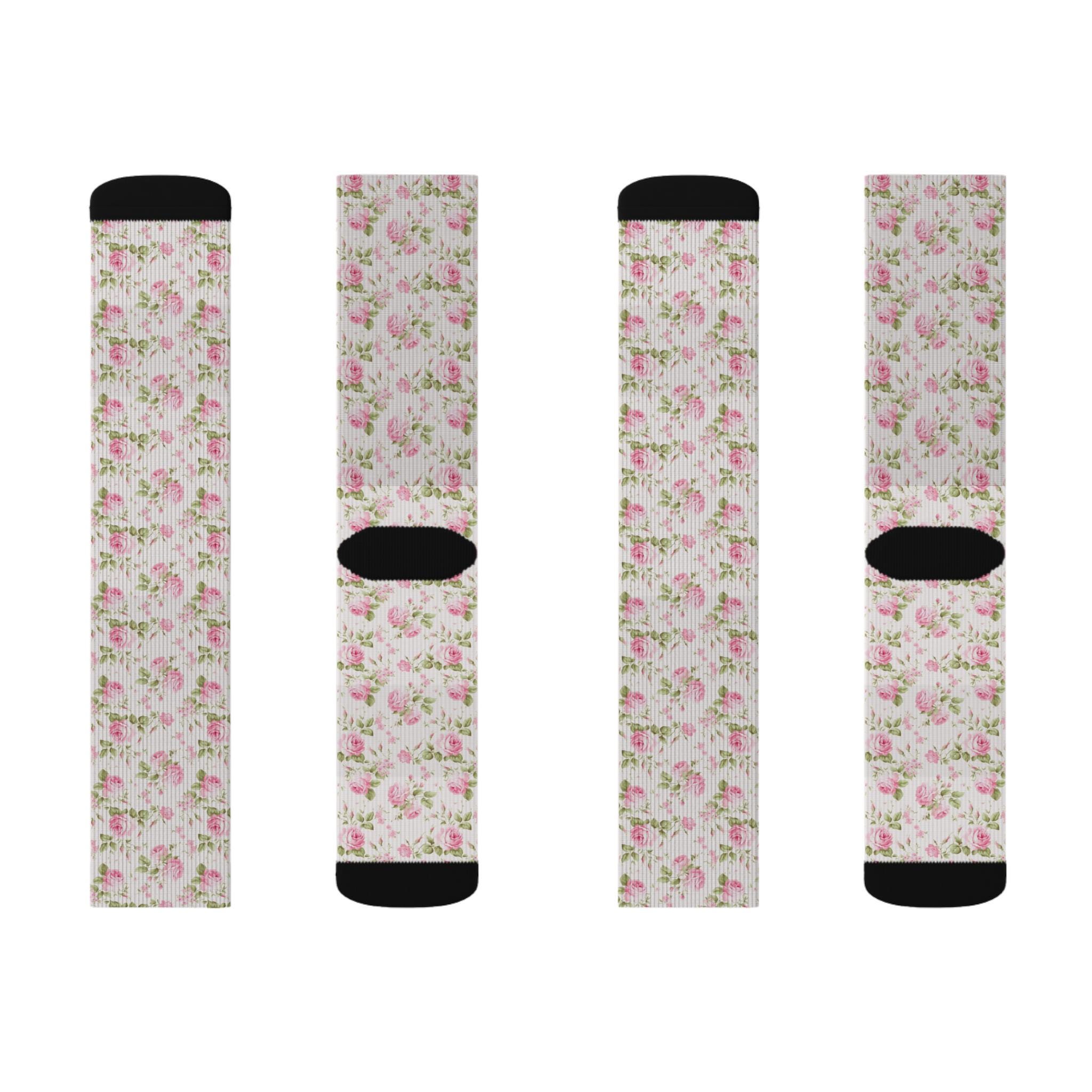 Love Shack Fancy Pink Floral Socks are perfect for those who love feminine, flowery designs. These sublimation socks feature a super soft fleece lining, all-over print, and crew length for warmth and comfort. The material is 95% polyester and 5% spandex, with three different sizes available. Ideal for anyone who enjoys cozy and stylish socks, these are great for wearing during the spring season or as a thoughtful gift for Mother's Day.